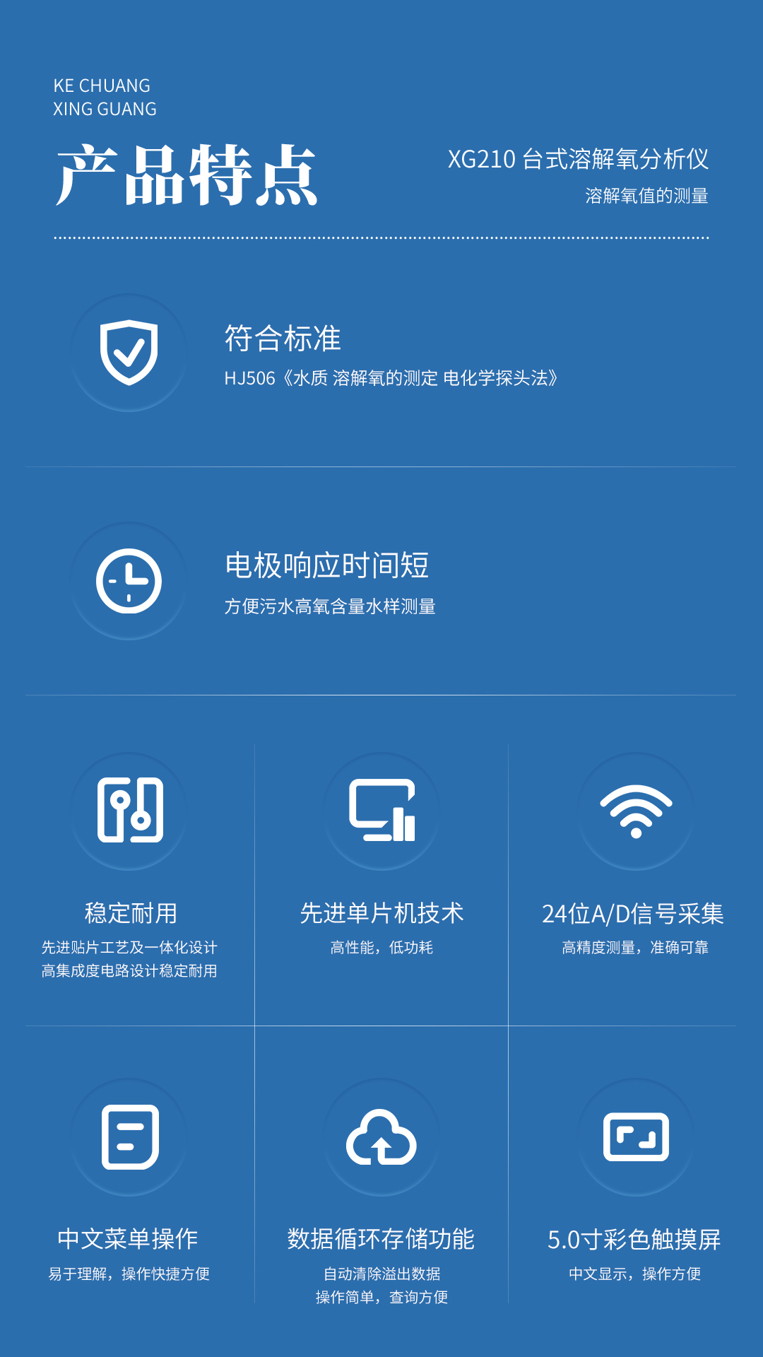 XG210 台式溶解氧分析仪 符合标准HJ506《水质 溶解氧的测定 电化学探头法》,用于工业、电力、农业、医药、食品、科研和环保等领域。如废水处理、纯净水、循环水、锅炉水等系统溶解氧值的测量。
