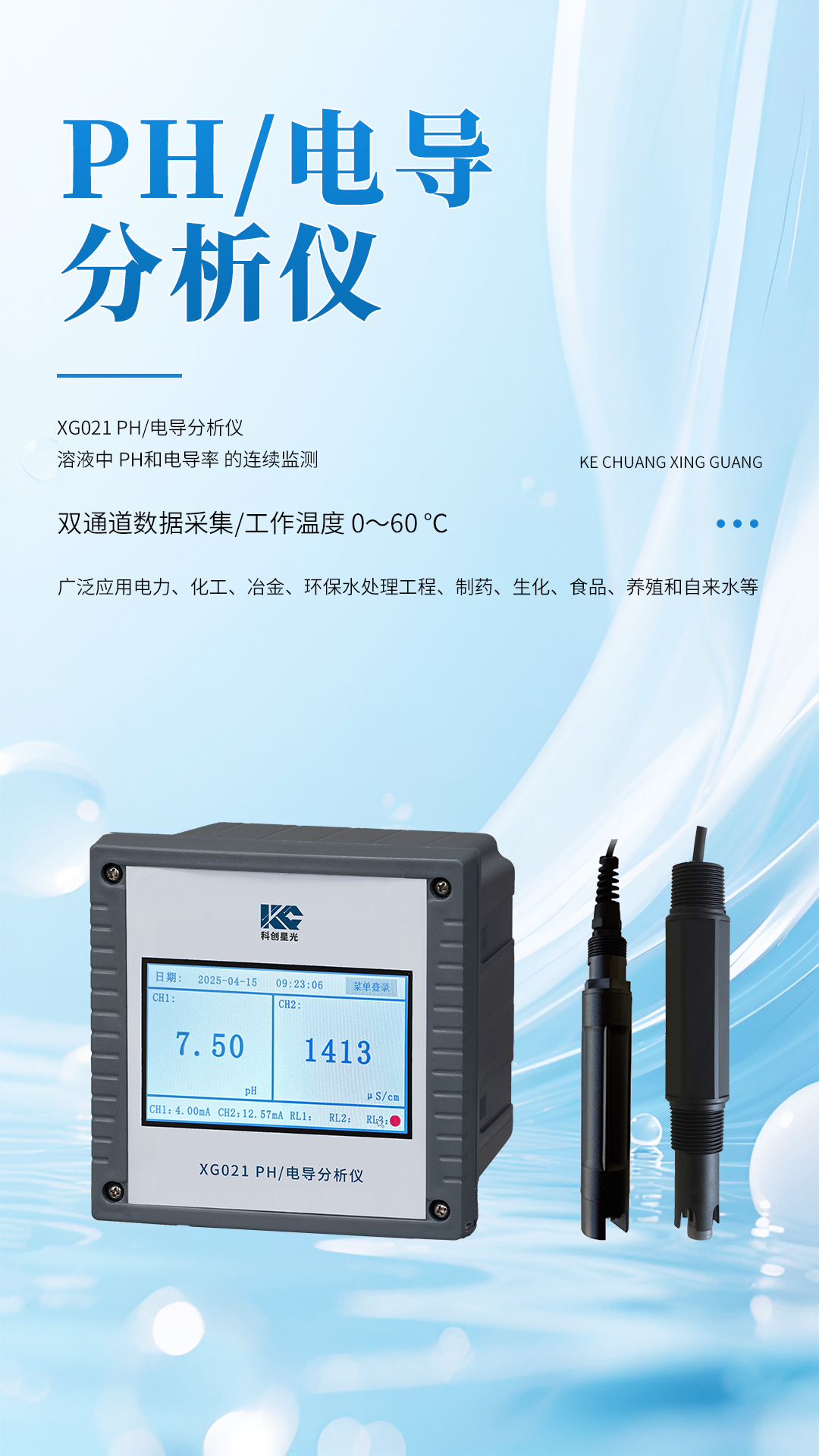 XG021 PH/电导分析仪 广泛应用于电力、化工、冶金、环保水处理工程、制药、生化、食品、养殖和自来水等溶液中PH和电导率的连续监测。