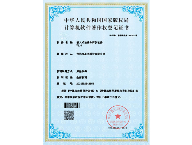 恭贺科创星光 荣获嵌入式油品分析仪软件专利