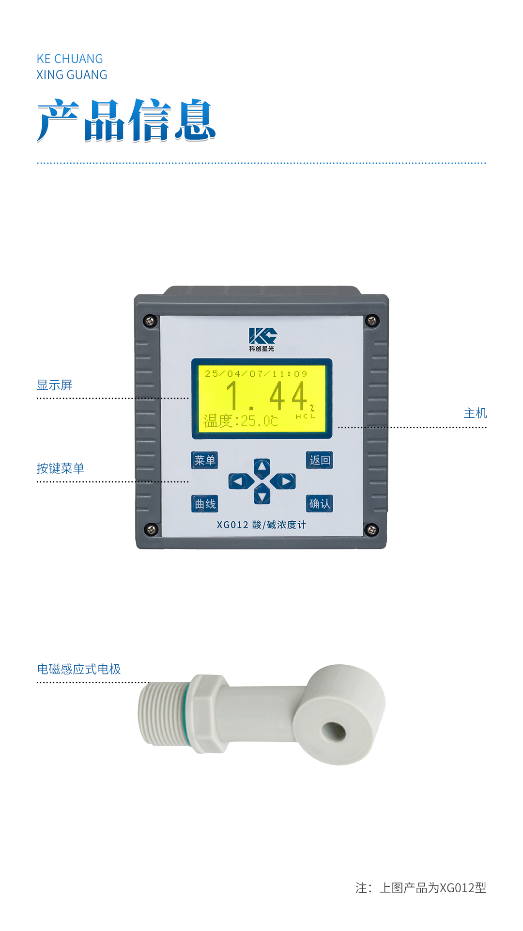 XG012型 酸/碱浓度计 是根据电磁感应原理设计的一种新型无接触式连续在线监测仪。仪器采用无极式传感器,传感器采用一对线绕合金环形线圈,传感器的探头与被测过程溶液体是完全隔离的(非接触)。两个线圈,一个作为发送器,另一个作为接收器。广泛应用于电力、化工、冶金、环保等工业液流中连续测量硫酸、盐酸、硝酸、磷酸、烧碱等强腐蚀性介质浓度。其适用测量条件为被测介质为单组分体系。