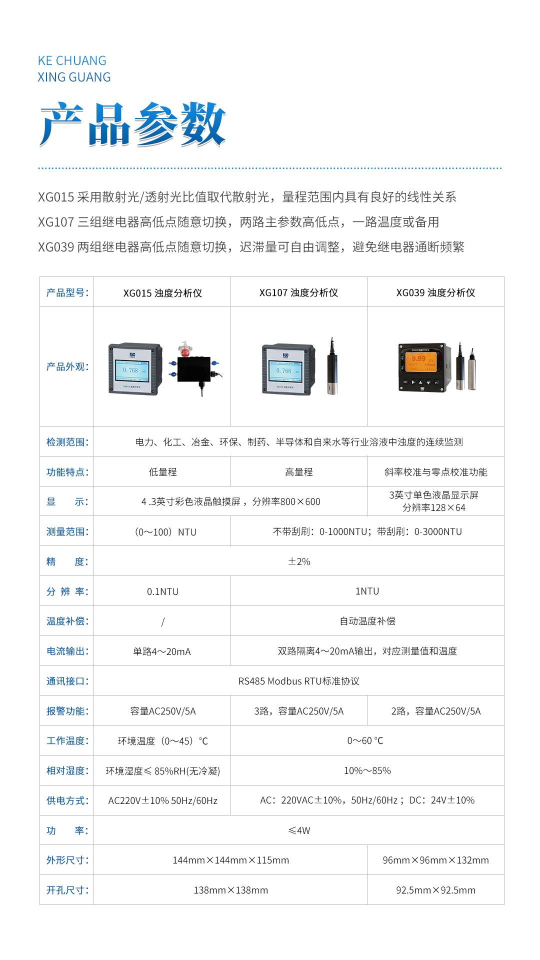 XG107 浊度分析仪(高量程) 产品详细介绍
