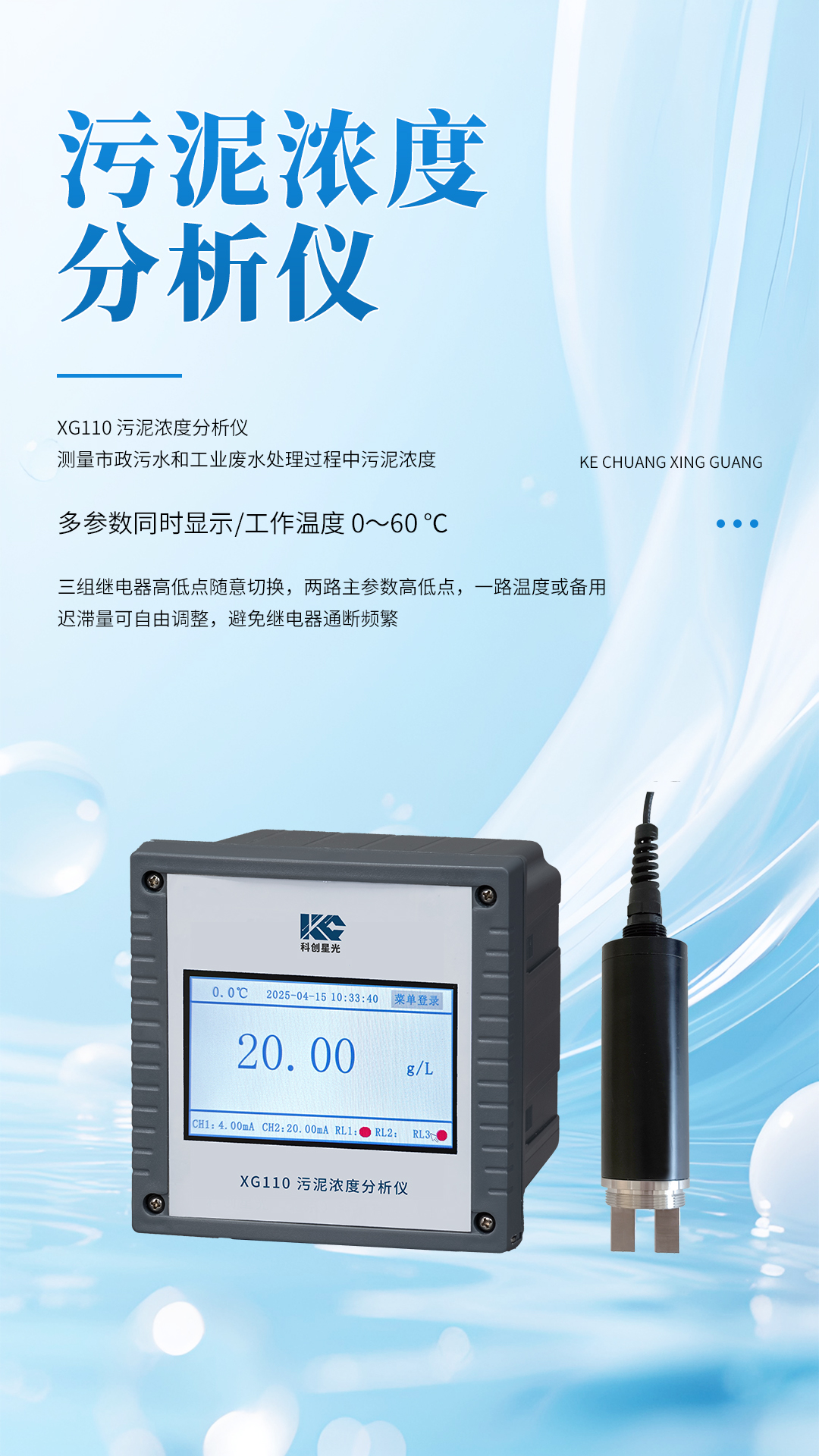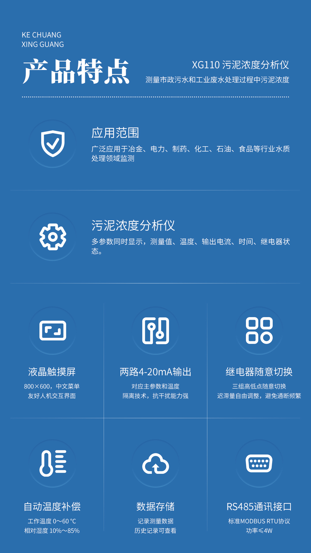 XG110 污泥浓度分析仪 是专为测量市政污水和工业废水处理过程中污泥浓度而设计的在线监测仪表,污泥浓度传感器的原理基于组合红外吸收散射光线法,应用ISO7027 方法可以连续并精确测定污泥浓度,广泛应用于冶金、电力、制药、化工、石油、食品等行业水质处理领域监测。