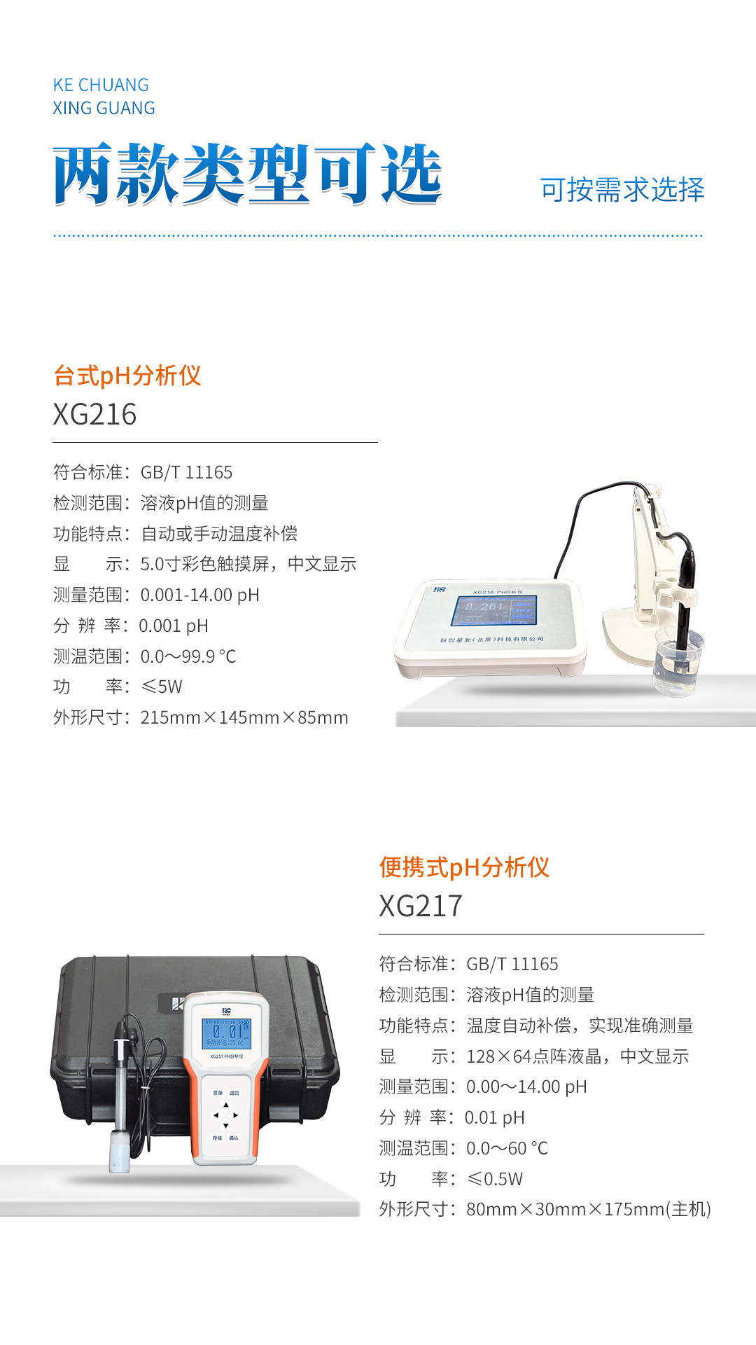 XG217 便携式pH分析仪 符合标准GB/T 11165《实验室pH计的试验方法》,可用于电厂、化工、冶金、环保、制药、生化、食品等溶液pH值的测量。