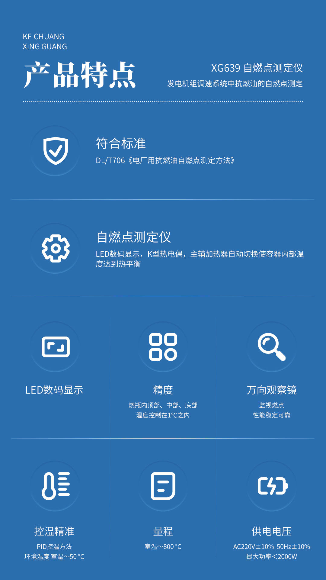 XG639 自燃点测定仪 符合DL/T706《电厂用抗燃油自燃点测定方法》标准。主要用于测定发电机组调速系统中抗燃油的自燃点测定。
