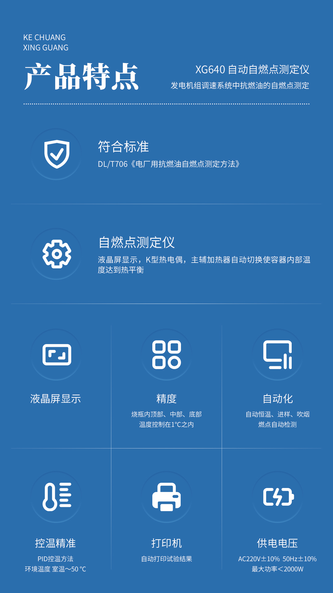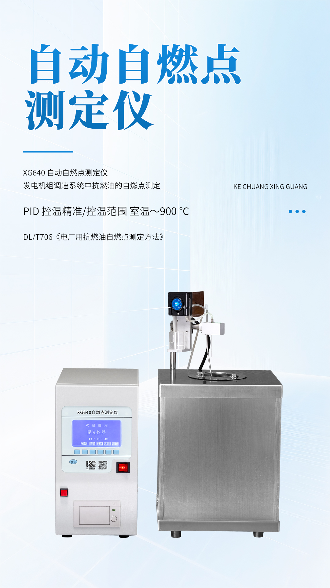 XG640 自动自燃点测定仪 符合DL/T706《电厂用抗燃油自燃点测定方法》标准。主要用于测定发电机组调速系统中抗燃油的自燃点测定。
