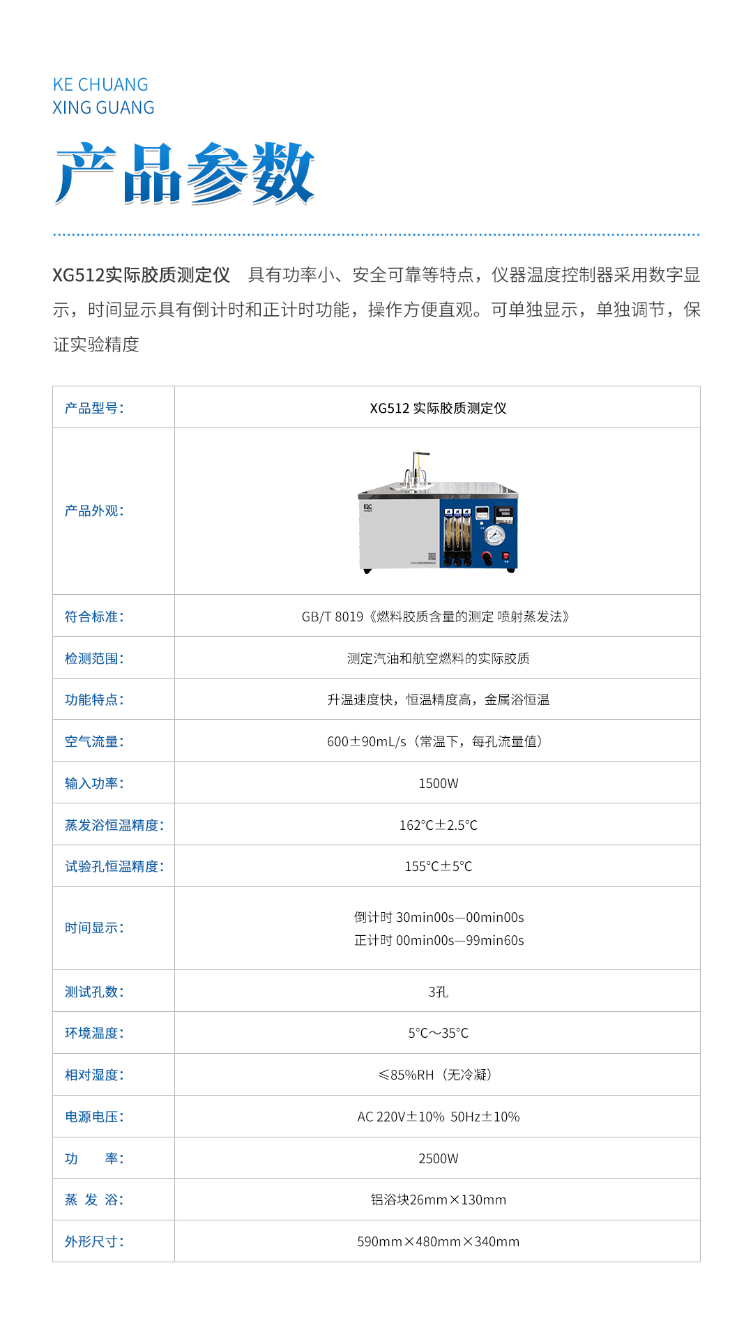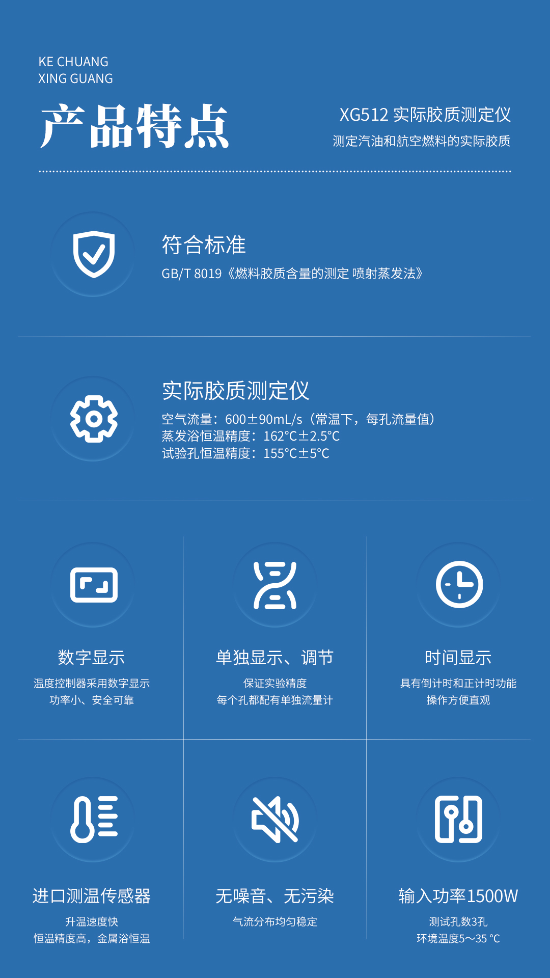 XG512实际胶质测定仪 依据GB/T 8019《燃料胶质含量的测定 喷射蒸发法》所规定的要求设计制造。适用于在该标准下测定汽油和航空燃料的实际胶质。